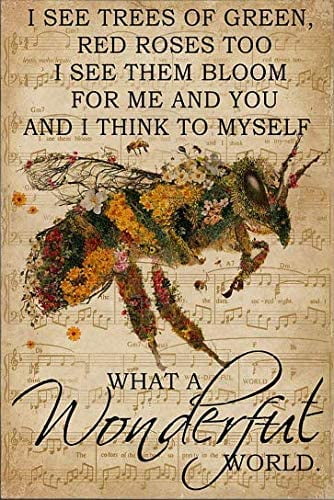 What a wonderful world. I see trees of green Red roses too I see them bloom For me and you And I think to myself What a wonderful world I see skies of blue And clouds of white. Signs are made to order and take approximately 2-3 weeks until they ship.